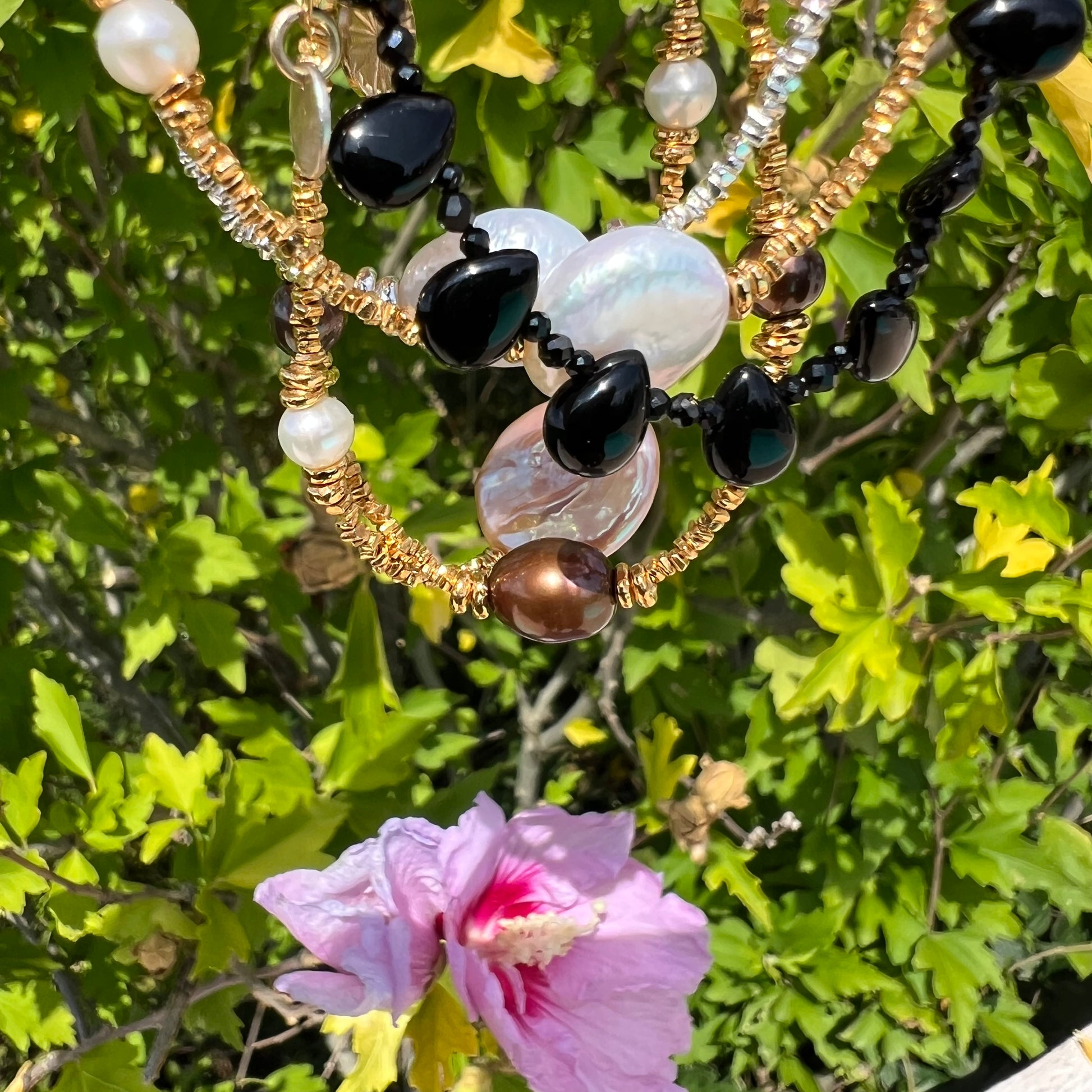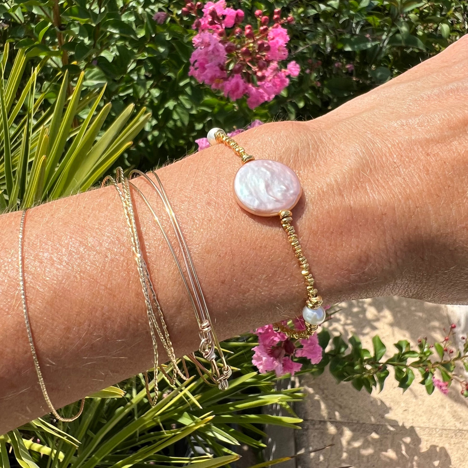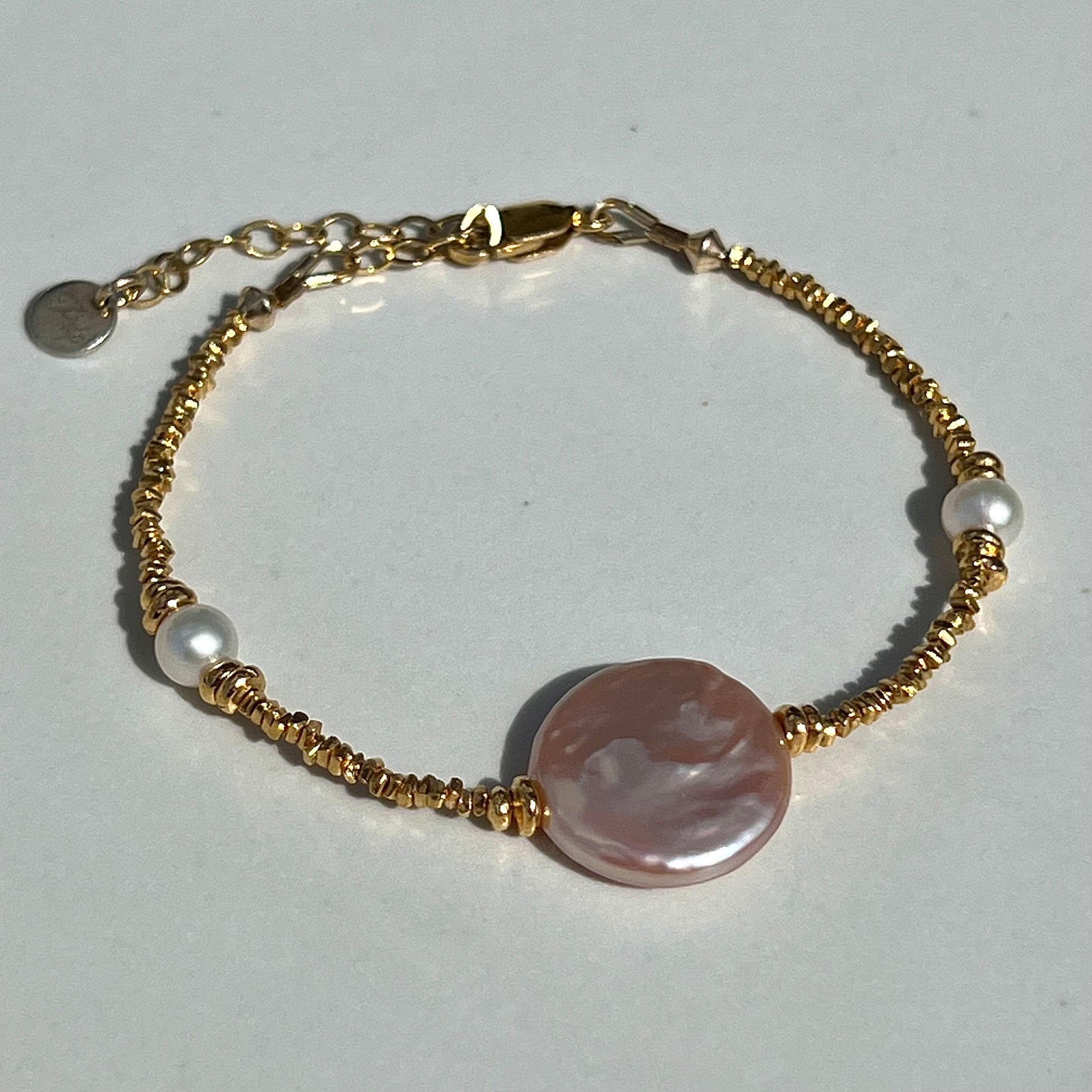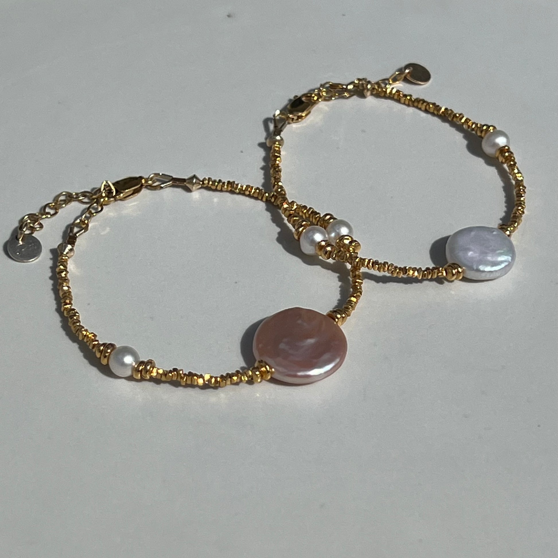 l’union délicate des perles d’eau douce et la noblesse des perles Karen en plaqué or 24 carats.